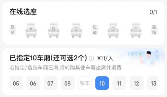进入选座页面后,会出现“指定车厢”和“在线选座”两个选项。无论点击哪个选项,“智行火车票”APP都准备了相应的引导付费项目。