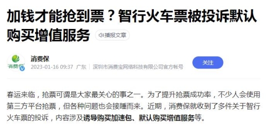 随着文旅行业复苏,节假日出行如何购买到心仪的车票又成了摆在消费者面前的问题。作为老牌的抢票软件,“智行火车票”APP近年出现了越来越多的购票“陷阱”,也不断引发着消费者们的“吐槽”和投诉。