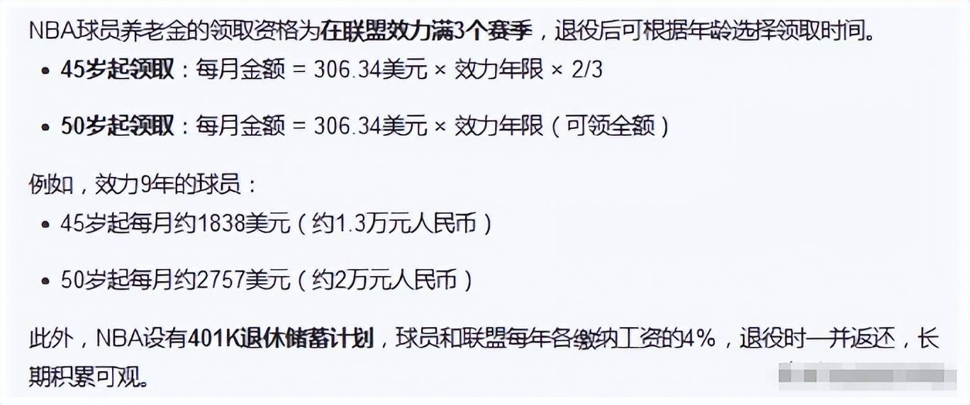 这套机制的一个特点是:无论是明星球员还是角色球员,只要在联盟里累计效力满三年,理论上都可以进入养老金的领取序列。