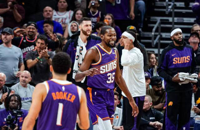 首先来关注西部的情况。太阳队本赛季在布克教练的带领下迅速崛起,目前以7胜1负的战绩高居西部榜首,展现了三巨头的实力。尽管他们在进攻和防守方面并非绝对顶尖,但关键时刻的球权处理能力卓越,让其他队伍很难匹敌。此外,布帅对这三名主力的合理调配也显得尤为关键。不过,太阳队的表现仍然存在波动,球队有时会陷入大幅落后,统治力尚欠缺。
