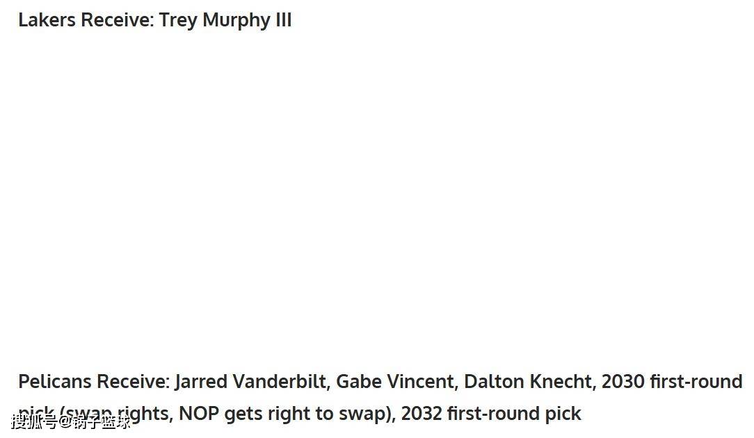 鹈鹕得到:范德比尔特+文森特+克内克特+2030年首轮+2032年首轮。
