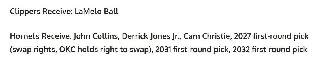 这是一笔离谱至极的交易方案,哪怕快船队陷入谷底,也绝对不会选择三球这种成色的球星,更何况为其付出三枚首轮签,以及小琼斯等优质筹码。