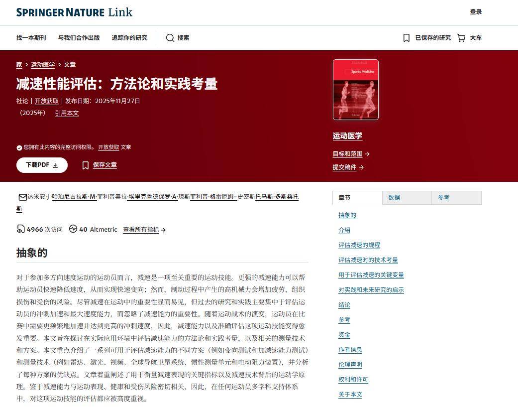 核心结论:减速是被长期忽视的关键运动能力;早期/晚期减速阶段对应不同的训练方向与损伤风险。