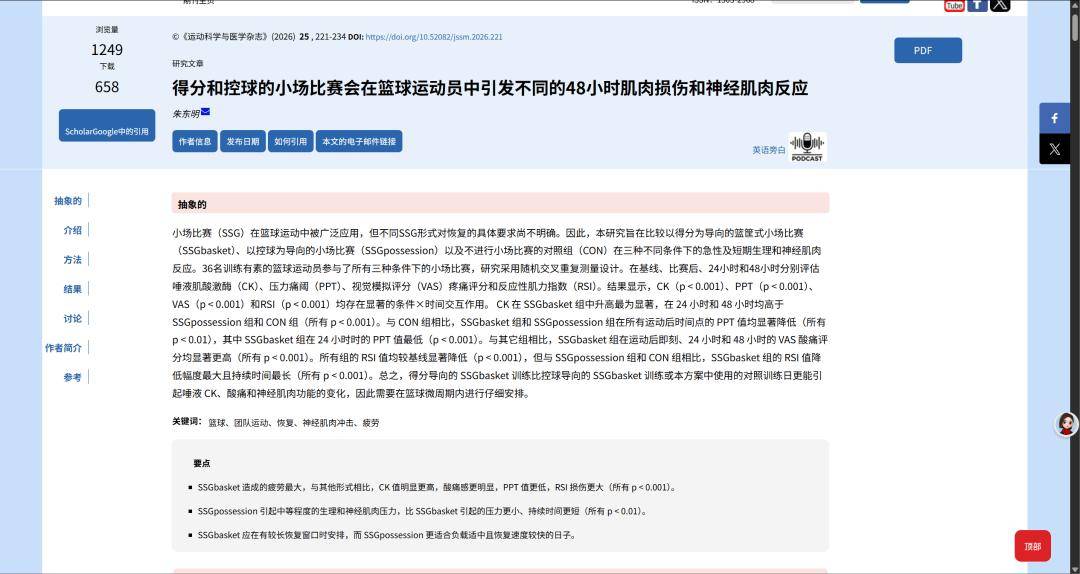 核心结论:得分导向小场地赛造成的肌肉损伤更大、神经肌肉恢复更慢;训练设计直接影响周计划安排。