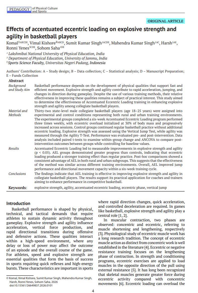 核心结论:强化离心负荷可提升篮球运动员爆发力与灵敏素质,优化拉长-缩短周期效率与离心力量。
