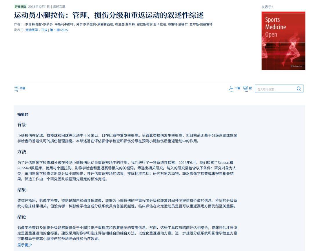 核心结论:比目鱼肌拉伤恢复周期长于腓肠肌;损伤分级需结合功能与影像结果;回归赛场必须以离心力量达标为标准。