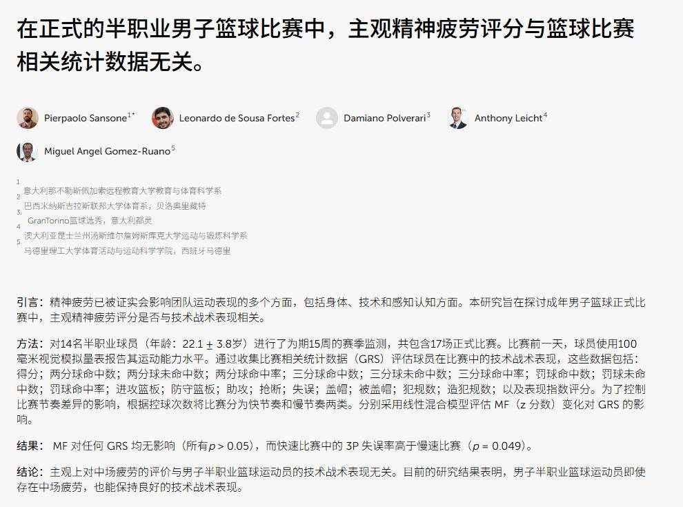 核心结论:赛前主观心理疲劳无法预测比赛数据;需结合客观神经肌肉指标做竞技状态决策。