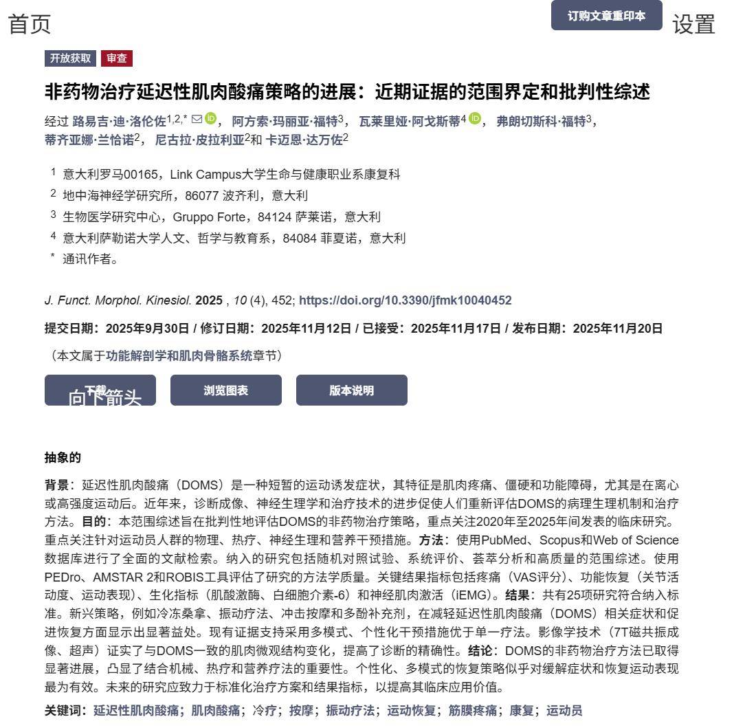 研究局限:非系统Meta分析;干预方案异质性高;多数研究样本量小;延迟性肌肉酸痛具有自限性与主观性。