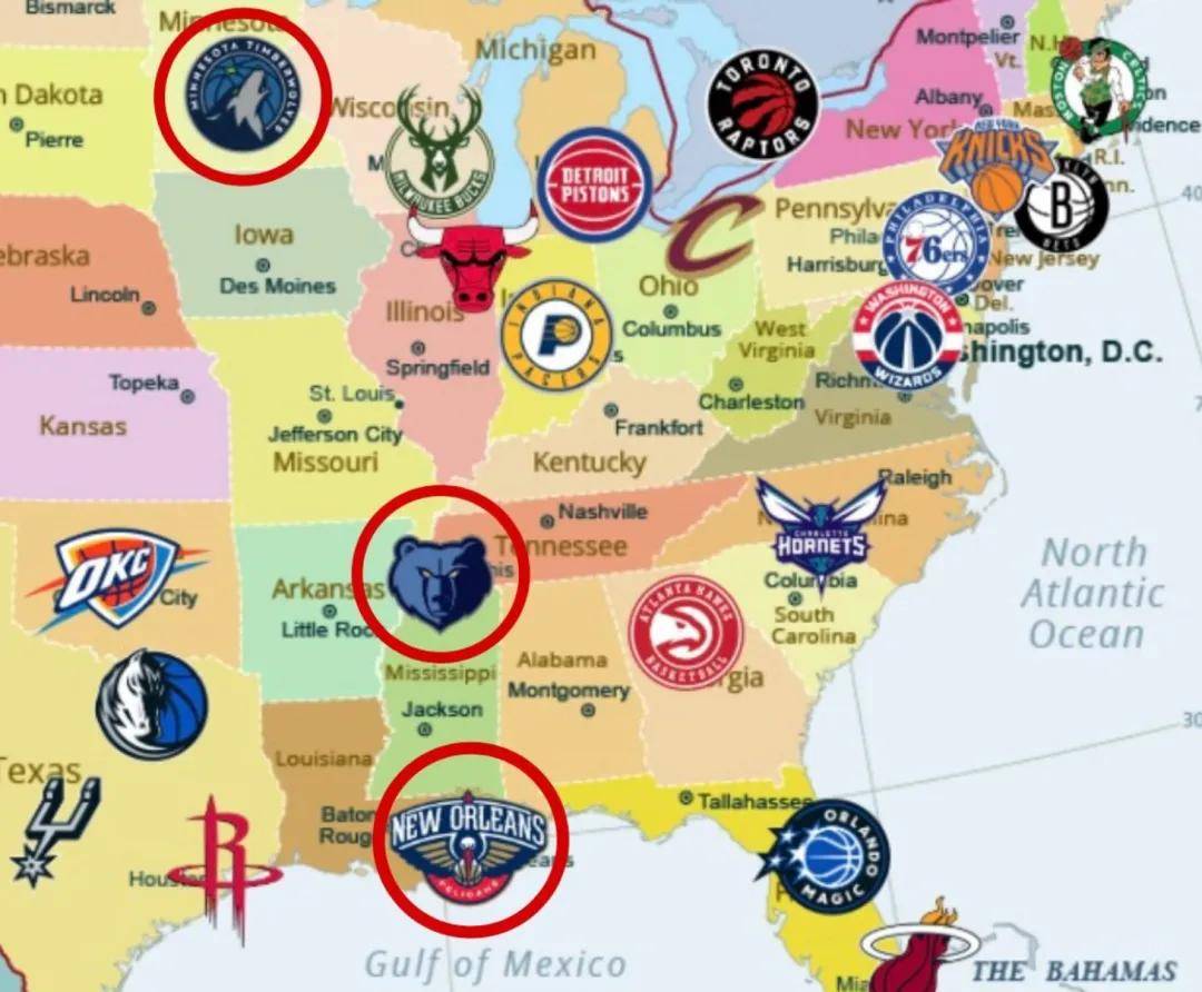 灰熊在孟菲斯,中部时区,长期处于“西部球队但偏东部”的模糊地带。拨过去,时差归零,客场飞行里程每年省下一架湾流的油钱。森林狼在明尼苏达,地图上看更接近东部。鹈鹕在新奥尔良,深南腹地,与灰熊同理。没有谁“应该”被迁走。联盟只会选扰动最小的选项。