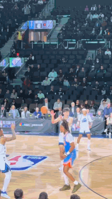 克林根完全中计,大幅度地扑向外线试图防守,而杨瀚森则趁势从容地从他身边滑过,直杀篮下,以一记轻松的上篮宣告得分。他的脸上还挂着一丝调皮的笑容,显然,他非常享受将这位二年级新秀“秀”进高光集锦时刻的快感。